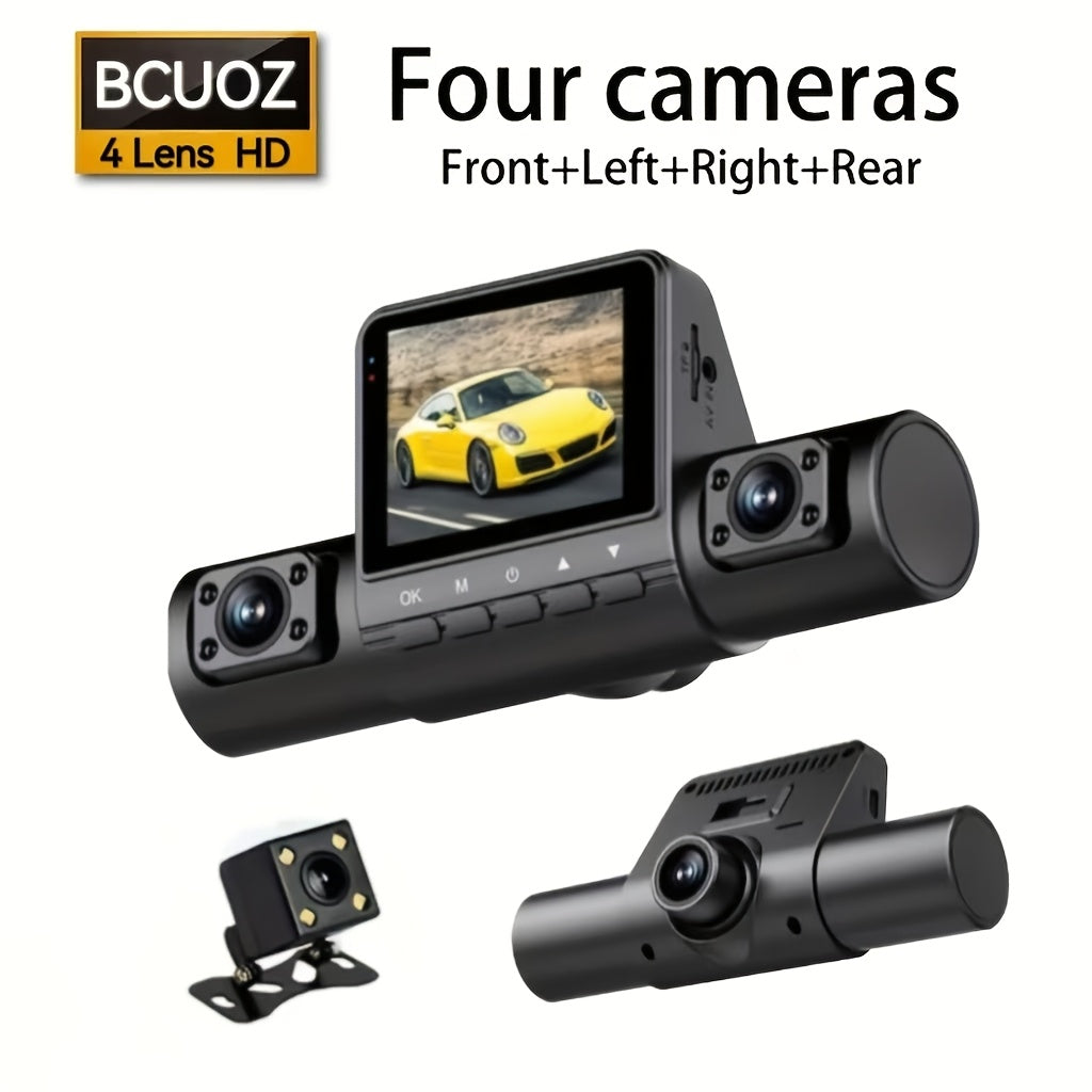 1pc BCUOZ 4-Lens HD Dash Cam, Full Car DVR Recorder with 2" LCD Display, Night Vision, Loop Recording, Motion Detection, Driver Side Auto Orientation, 5V Plug-in, Push Button Control, 1080p Video, 150mAh Rechargeable Battery,